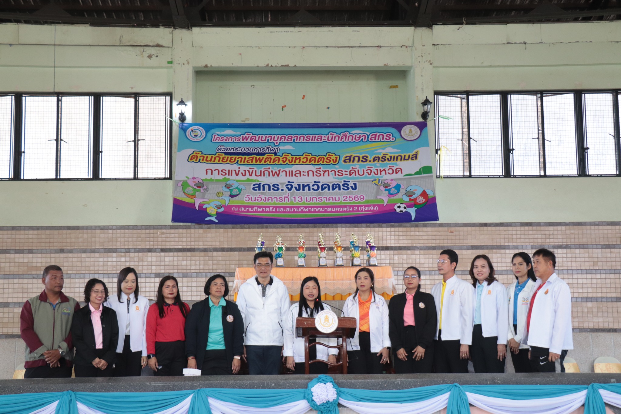 วันที่ 13 มกราคม 2569 นางสาวทิวาวรรณ พิทักษ์จินดา ผู้อำนวยการ สกร.ระดับอำเภอกันตัง พร้อมด้วยบุคลากรและนักศึกษาในสังกัด เข้าร่วมโครงการพัฒนาบุคลากรและนักศึกษาสกร. ต้านภัยยาเสพติดจังหวัดตรัง สกร.ตรังเกมส์ การแข่งขันกีฬาและกรีฑาระดับจังหวัด สกร.จังหวัดตรัง โดยมีนางสาววราภรณ์ กลิ่นเกิด ผู้อำนวยการสำนักงานสกร.ประจำจังหวัดตรัง เป็นประธานในพิธีเปิด ณ สนามกีฬาเทศบาลนครตรัง และสนามกีฬาทุ่งแจ้ง อำเภอเมืองตรัง จังหวัดตรัง