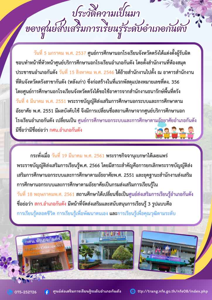 กรมส่งเสริมการเรียนรู้ สนง.สกร.ประจำจังหวัดตรัง สกร.ระดับอำเภอกันตัง หสม.อำเภอกันตัง Line OA 03 สกร.จังหวัดตรัง คลังภาพ YouTube