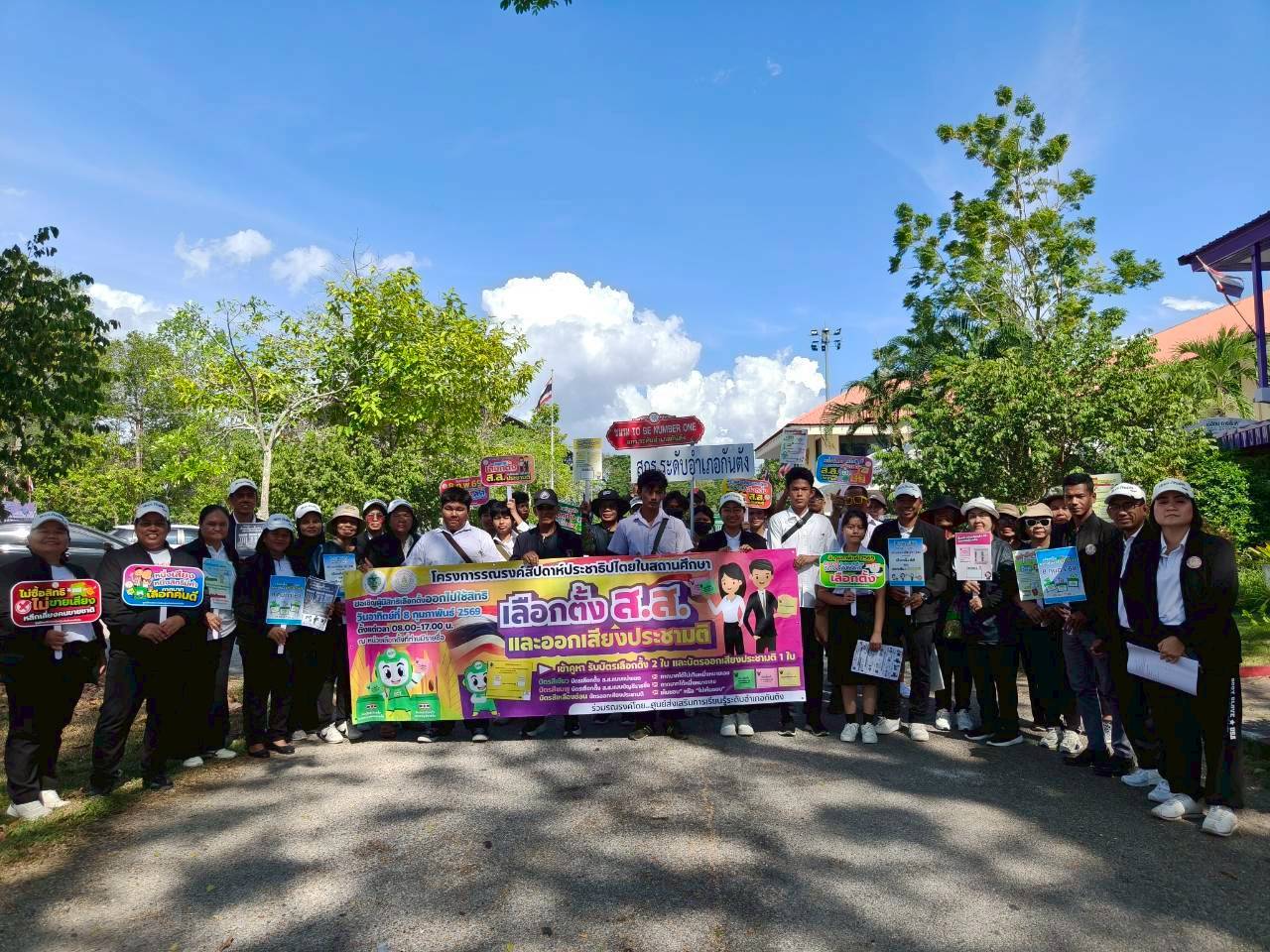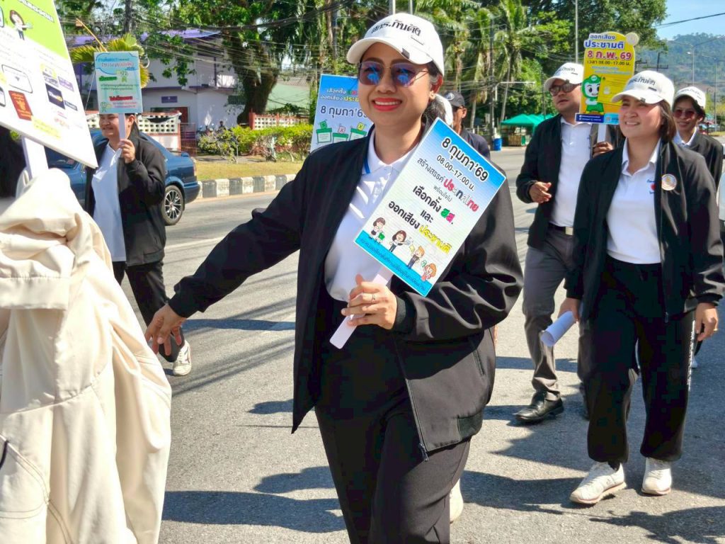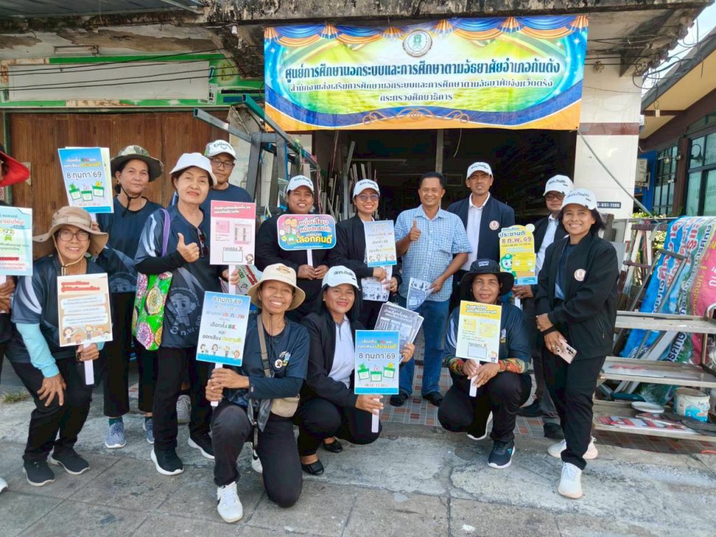 วันศุกร์ที่ 6 กุมภาพันธ์ 2569 นางสาวทิวาวรรณ พิทักษ์จินดา ผู้อำนวยการศูนย์ส่งเสริมการเรียนรู้ระดับอำเภอกันตัง พร้อมด้วยบุคลากร นักศึกษา สกร.ระดับอำเภอกันตัง จัดโครงการรณรงค์สัปดาห์ประชาธิปไตยในสถานศึกษา ลงพื้นที่ร่วมรณรงค์เลือกตั้ง สมาชิกผู้แทนราษฎร เชิญชวนผู้ปกครองและประชาชนในพื้นที่ ให้ออกไปใช้สิทธิ์ใช้เสียงในการเลือกตั้ง ที่จะเกิดขึ้นในวันที่ 8 กุมภาพันธ์ 2569 พร้อมถือป้ายประชาสัมพันธ์ให้ความรู้ เกี่ยวกับความสำคัญของการเลือกตั้ง ณ เขตเทศบาลเมืองกันตัง อำเภอกันตัง จังหวัดตรัง