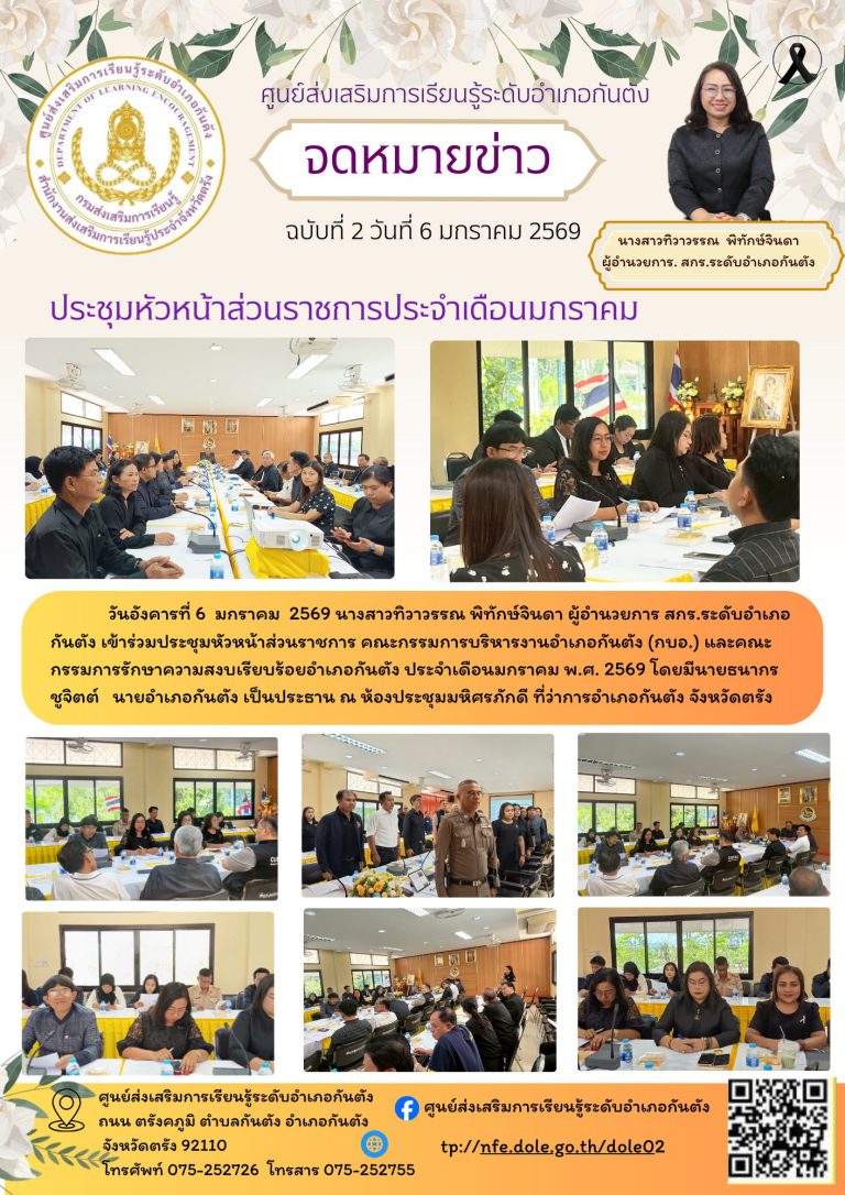 จดหมายข่าว Byศูนย์ส่งเสริมการเรียนรู้ระดับอำเภอกันตัง 06/01/202612/01/2026 ประชุมหัวหน้าส่วนราชการ คณะกรรมการบริหารงานอำเภอกันตัง …