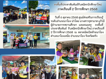 ลงพื้นที่ประชาสัมพันธ์รับสมัครนักศึกษาใหม่ ภาคเรียนที่ 2 ปีการศึกษา 2568 ณ พื้นที่ตำบลละมอ 14 ต.ค. 2568สกร.ระดับอำเภอนาโยงจดหมายข่าว