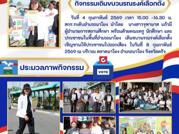 เดินขบวนรณรงค์เลือกตั้ง เชิญชวนให้ประชาชนไปออกเสียง ในวันที่ 8 กุมภาพันธ์ 2569 ณ บริเวณ ตลาดนาโยง อำเภอนาโยง จังหวัดตรัง 5 ก.พ. 2569สกร.ระดับอำเภอนาโยงจดหมายข่าว