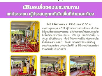 พิธีมอบสิ่งของพระราชทาน แก่ประชาชน ผู้ประสบอุทกภัยในพื้นที่อำเภอนาโยง 30 ม.ค. 2569สกร.ระดับอำเภอนาโยงจดหมายข่าว