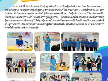 โครงการอบรมอาสายุวกาชาด หลักสูตรการดูแลผู้สูงอายุ สกร.ระดับอำเภอนาโยง ภาคเรียนที่ 2 ปีการศึกษา 2568 รุ่นที่ 668/ตง.33 และมอบวุฒิบัตรให้แก่นักศึกษา 30 ม.ค. 2569สกร.ระดับอำเภอนาโยงจดหมายข่าว