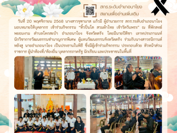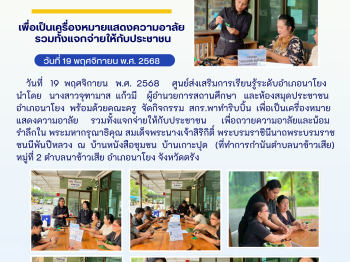 กิจกรรม สกร.พาทำริบบิ้น เพื่อเป็นเครื่องหมายแสดงความอาลัย รวมทั้งแจกจ่ายให้กับประชาชน 9 ธ.ค. 2568สกร.ระดับอำเภอนาโยงจดหมายข่าว