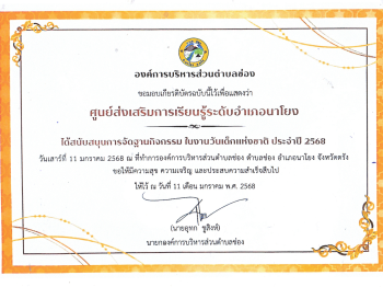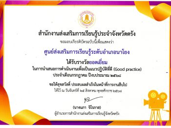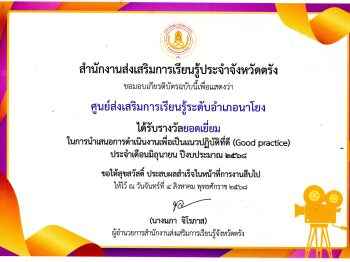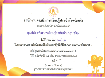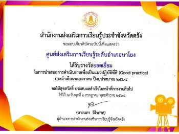 สกร.ระดับอำเภอนาโยง ได้รับรางวัลยอดเยี่ยม ในการนำเสนอการดำเนินงานเพื่อเป็นแนวปฏิบัติที่ดี (Good practice) ไตรมาส 2 24 พ.ย. 2568สกร.ระดับอำเภอนาโยงรางวัล