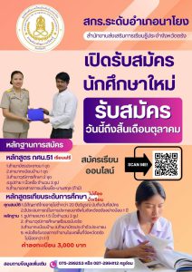 สกร.ระดับอำเภอนาโยง จังหวัดตรัง เปิดรับสมัครนักศึกษาใหม่ 19 ก.ย. 256819 ก.ย. 2025สกร.ระดับอำเภอนาโยงกิจกรรมภายใน, ข่าวสาร สกร.ระดับอำเภอนาโยง จังหวัดตรัง เปิดรับสมัครนักศึกษาใหม่ หลักสูตรพื้นฐาน กศน.2551 หลักสูตรเทียบระดับการศึกษา ด่วน!!!! ตั้งเเต่วันนี้ ถึง 30 ตุลาคม 2568