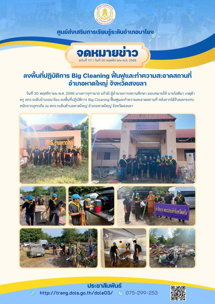 ลงพื้นที่ปฏิบัติการ Big Cleaning ฟื้นฟูและทำความสะอาดสถานที่ อำเภอหาดใหญ่ จังหวัดสงขลา 30 ม.ค. 2569สกร.ระดับอำเภอนาโยงจดหมายข่าว
