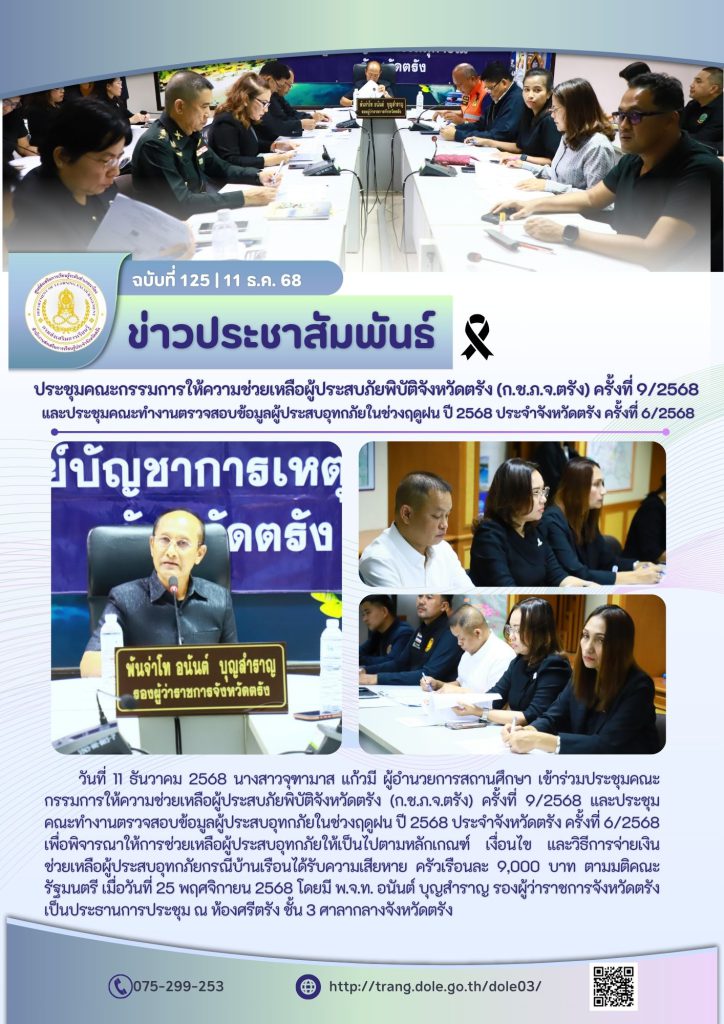 ประชุมคณะกรรมการให้ความช่วยเหลือผู้ประสบภัยพิบัติจังหวัดตรัง (ก.ช.ภ.จ.ตรัง) ครั้งที่ 9/2568 และประชุมคณะทำงานตรวจสอบข้อมูลผู้ประสบอุทกภัยในช่วงฤดูฝน ปี 2568 ประจำจังหวัดตรัง ครั้งที่ 6/2568 30 ม.ค. 2569สกร.ระดับอำเภอนาโยงจดหมายข่าว