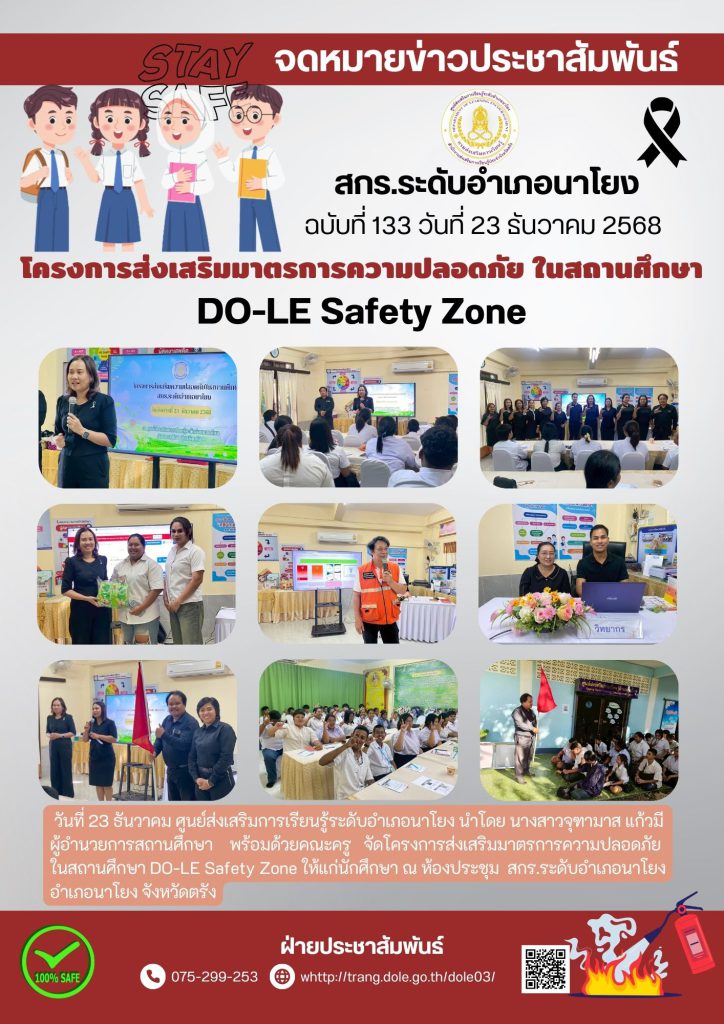 โครงการส่งเสริมมาตรการความปลอดภัยในสถานศึกษา DO-LE Safety Zone 30 ม.ค. 2569สกร.ระดับอำเภอนาโยงจดหมายข่าว