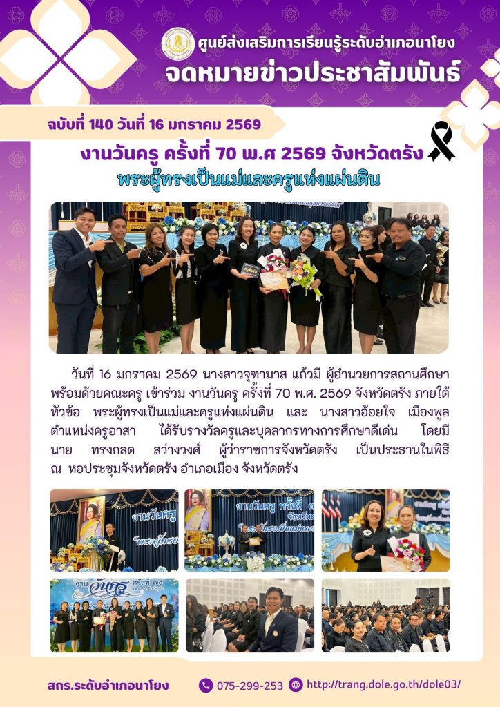 งานวันครู ครั้งที่ 70 พ.ศ 2569 จังหวัดตรัง