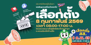 วันอาทิตย์ที่ 8 กุมภาพันธ์ 2569 ขอเชิญชวนนักศึกษา ผู้ปกครอง ออกไปใช้สิทธิลงคะแนนเลือกตั้งสมาชิกสภาผู้แทนราษฎร และออกเสียงประชามติ พ.ศ. 2569 ณ หน่วยเลือกตั้งตามสิทธิของตนเอง