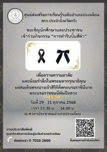 ประชาสัมพันธ์ ขอเชิญชวนนักศึกษาและประชาชนเข้าร่วมกิจกรรม “การทำริบบิ้นสีดำ” 27 ตุลาคม 2025 จำนวนผู้เข้าชม: 1