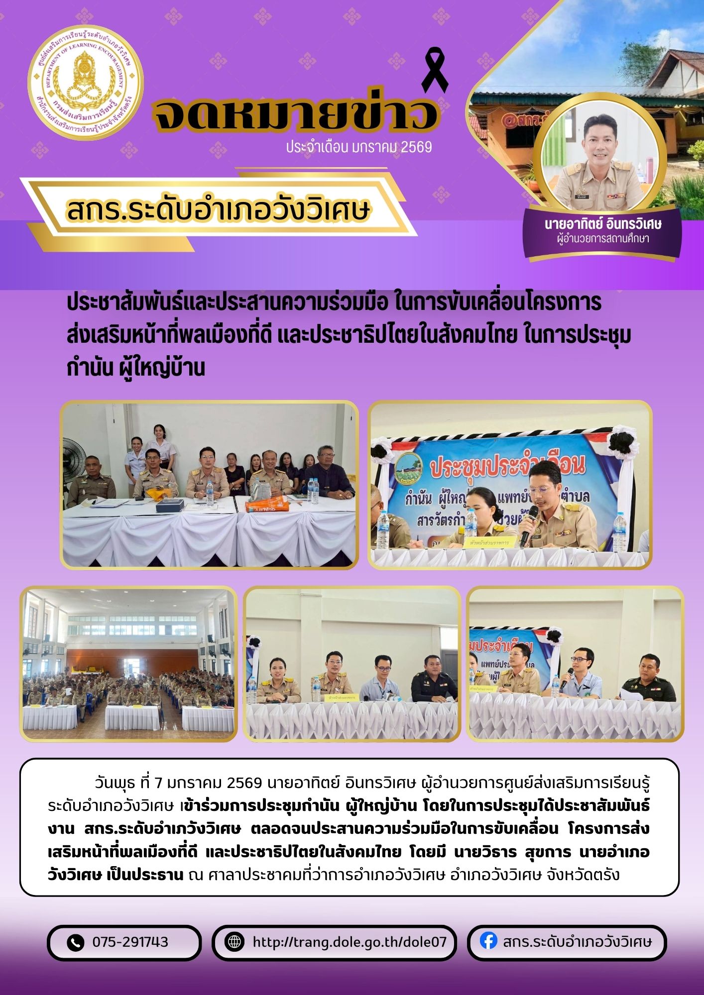 กิจกรรมประชาสัมพันธ์ เข้าร่วมการประชุมกำนัน ผู้ใหญ่บ้าน โดยในการประชุมได้ประชาสัมพันธ์งาน สกร.ระดับอำเภวังวิเศษ ตลอดจนประสานความร่วมมือในการขับเคลื่อน โครงการส่งเสริมหน้าที่พลเมืองที่ดี และประชาธิปไตยในสังคมไทย จำนวนผู้เข้าชม: 0