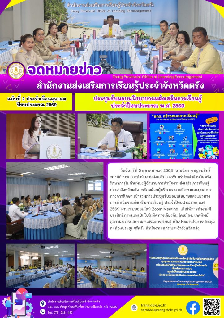 การประชุมรับมอบนโยบายและแนวทางการดำเนินงานส่งเสริมการเรียนรู้ ประจำปีงบประมาณ พ.ศ. 2569 10 ต.ค. 2568Admin Systemข่าวสาร จำนวนผู้เข้าชม: 2