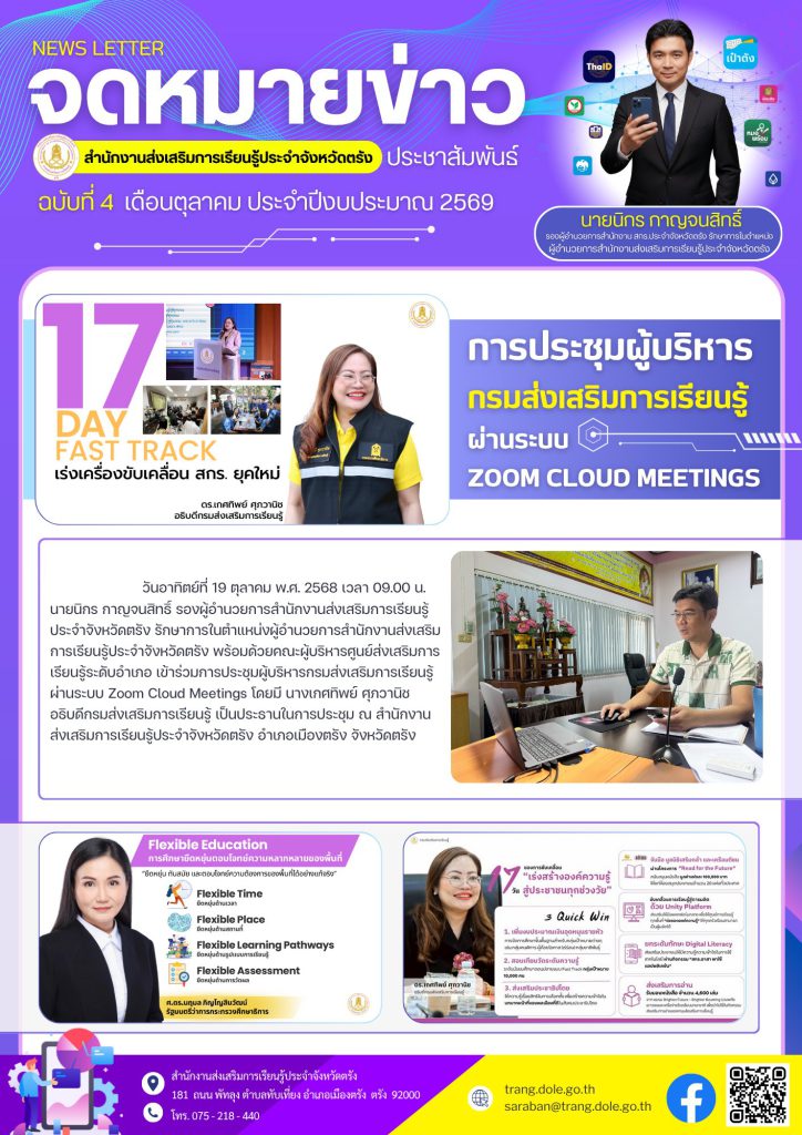 การประชุมผู้บริหารกรมส่งเสริมการเรียนรู้ ผ่านระบบ Zoom Cloud Meetings 20 ต.ค. 2568Admin Systemข่าวสาร จำนวนผู้เข้าชม: 4