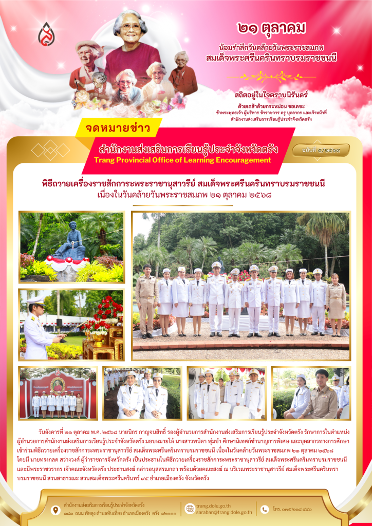 พิธีถวายเครื่องราชสักการะพระราชานุสาวรีย์ สมเด็จพระศรีนครินทราบรมราชชนนี เนื่องในวันคล้ายวันพระราชสมภพ 24 ต.ค. 2568Admin Systemกิจกรรม จำนวนผู้เข้าชม: 3