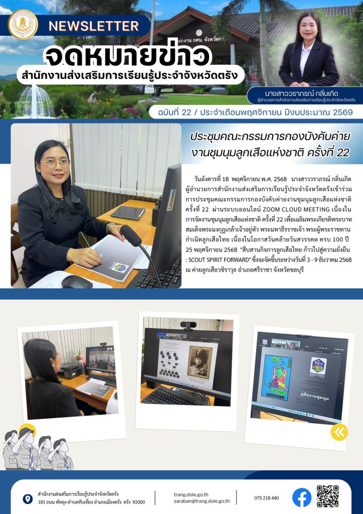 การประชุมคณะกรรมการกองบังคับค่ายงานชุมนุมลูกเสือแห่งชาติ ครั้งที่ 22 18 พ.ย. 2568Admin Systemประชาสัมพันธ์ จำนวนผู้เข้าชม: 1