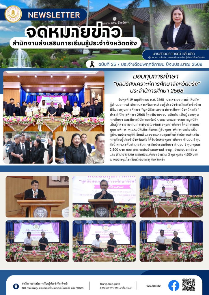 พิธีมอบทุนการศึกษา “มูลนิธิสงเคราะห์การศึกษาจังหวัดตรัง” ประจำปีการศึกษา 2568 19 พ.ย. 2568Admin Systemประชาสัมพันธ์ จำนวนผู้เข้าชม: 2