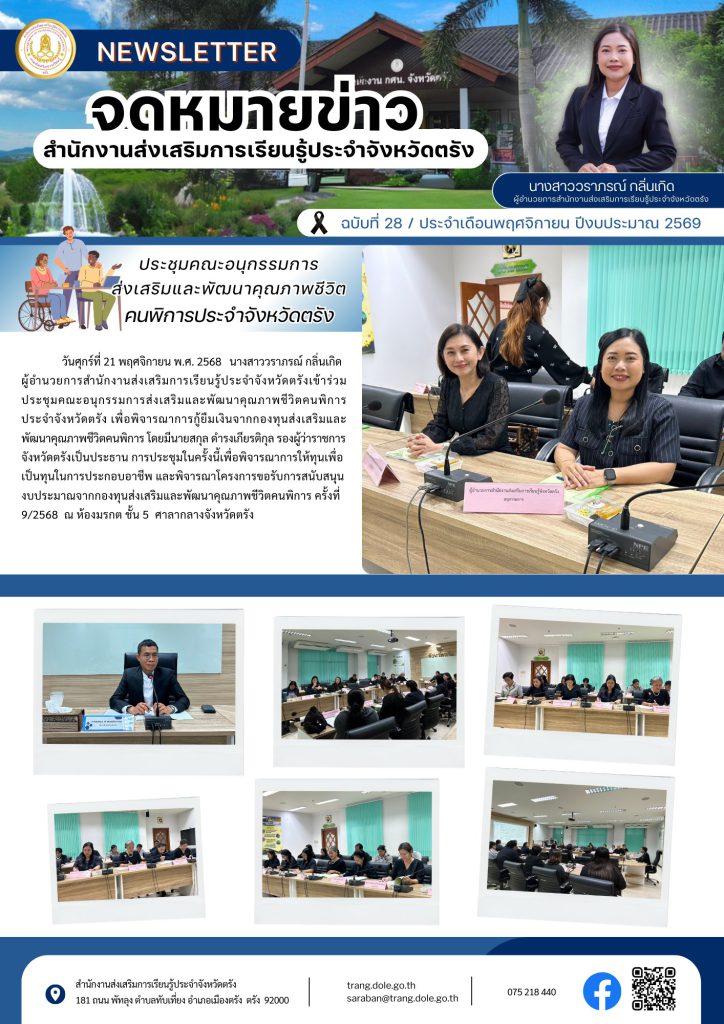 ประชุมคณะอนุกรรมการส่งเสริมและพัฒนาคุณภาพชีวิตคนพิการประจำจังหวัดตรัง 26 พ.ย. 2568Admin Systemประชาสัมพันธ์ จำนวนผู้เข้าชม: 1