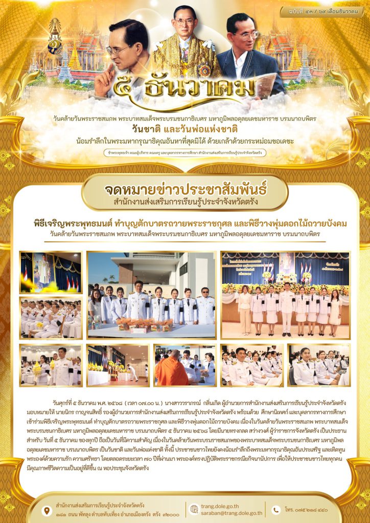 พิธีเจริญพระพุทธมนต์ ทำบุญตักบาตรถวายพระราชกุศล และพิธีวางพุ่มดอกไม้ถวายบังคม เนื่องในวันคล้ายวันพระราชสมภพ พระบาทสมเด็จพระบรมชนกาธิเบศร มหาภูมิพลอดุลยเดชมหาราช บรมนาถบพิตร 8 ธ.ค. 2568Admin Systemกิจกรรม จำนวนผู้เข้าชม: 0