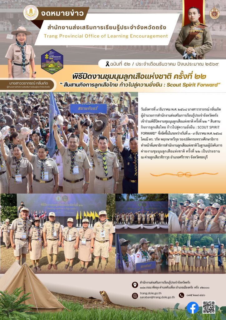 พิธีปิดงานชุมนุมลูกเสือแห่งชาติ ครั้งที่ ๒๒ “ สืบสานกิจการลูกเสือไทย ก้าวไปสู่ความยั่งยืน : Scout Spirit Forward” 12 ธ.ค. 2568Admin Systemกิจกรรม จำนวนผู้เข้าชม: 2