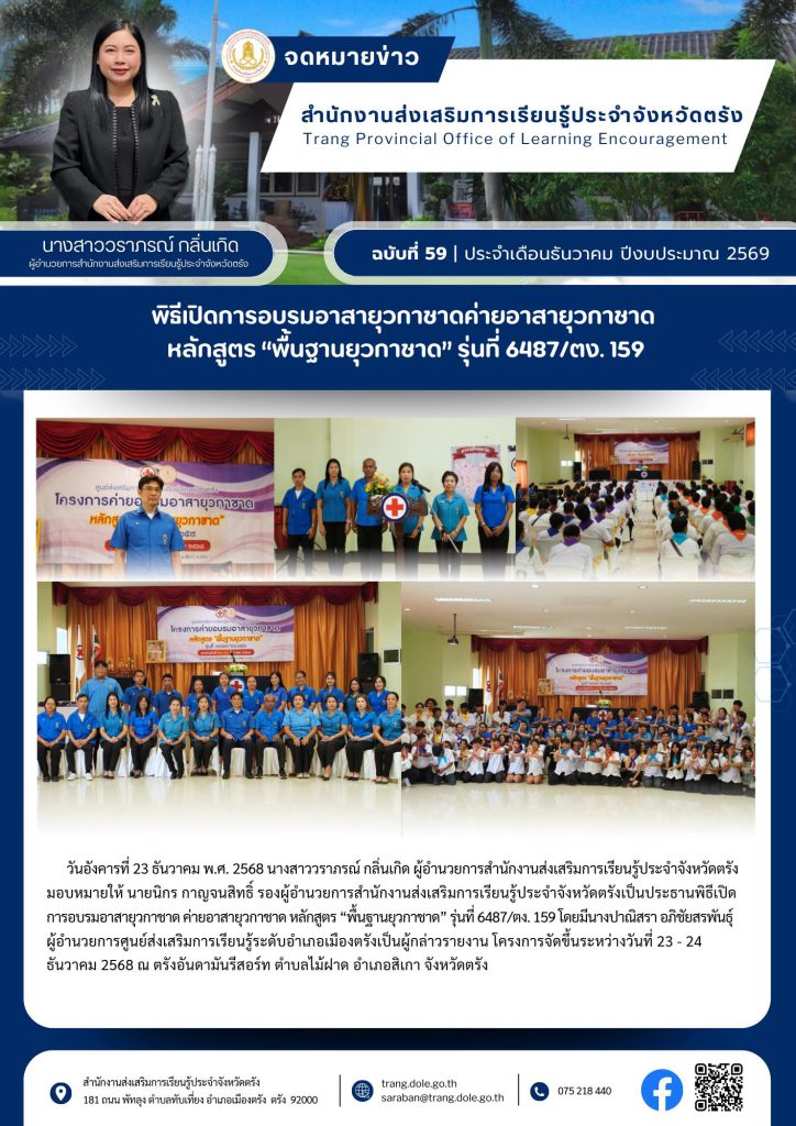 การอบรมอาสายุวกาชาด ค่ายอาสายุวกาชาด หลักสูตร “พื้นฐานยุวกาชาด” รุ่นที่ 6487/ตง. 159 29 ธ.ค. 2568Admin Systemกิจกรรม จำนวนผู้เข้าชม: 0