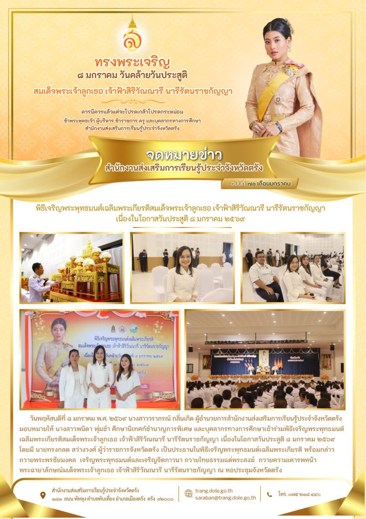พิธีเจริญพระพุทธมนต์เฉลิมพระเกียรติสมเด็จพระเจ้าลูกเธอ เจ้าฟ้าสิริวัณณวรี นารีรัตนราชกัญญา 9 ม.ค. 2569Admin Systemกิจกรรม จำนวนผู้เข้าชม: 3