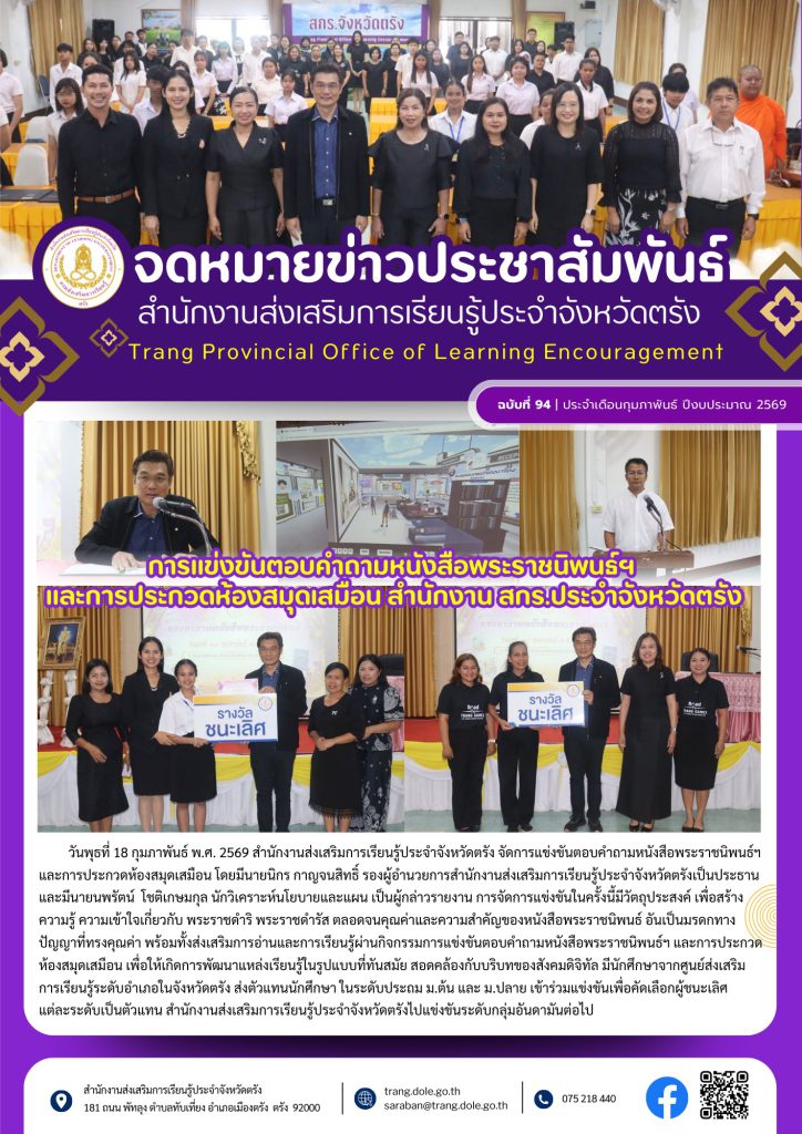 การแข่งขันตอบคำถามหนังสือพระราชนิพนธ์ฯ และการประกวดห้องสมุดเสมือน 25 ก.พ. 2569Admin Systemประชาสัมพันธ์ กิจกรรม สกร.ประจำจังหวัดตรัง จำนวนผู้เข้าชม: 0
