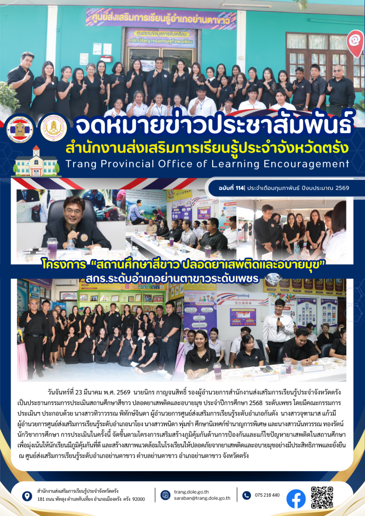 โครงการ “สถานศึกษาสีขาว ปลอดยาเสพติดและอบายมุข” 2568 สกร.ระดับอำเภอย่านตาขาว 23 มี.ค. 2569สายธาร ทองรักษ์ประชาสัมพันธ์ กิจกรรม สกร.ประจำจังหวัดตรัง, ประชาสัมพันธ์ กิจกรรม สถานศึกษา จำนวนผู้เข้าชม: 5