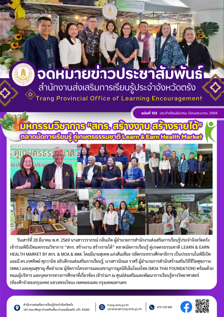มหกรรมวิชาการ “สกร. สร้างงาน สร้างรายได้” ตลาดนัดการเรียนรู้ คู่เกษตรธรรมชาติ Learn & Earn Health Market 28 มี.ค. 2569สายธาร ทองรักษ์ประชาสัมพันธ์ กิจกรรม สกร.ประจำจังหวัดตรัง, ประชาสัมพันธ์ กิจกรรม สถานศึกษา จำนวนผู้เข้าชม: 9