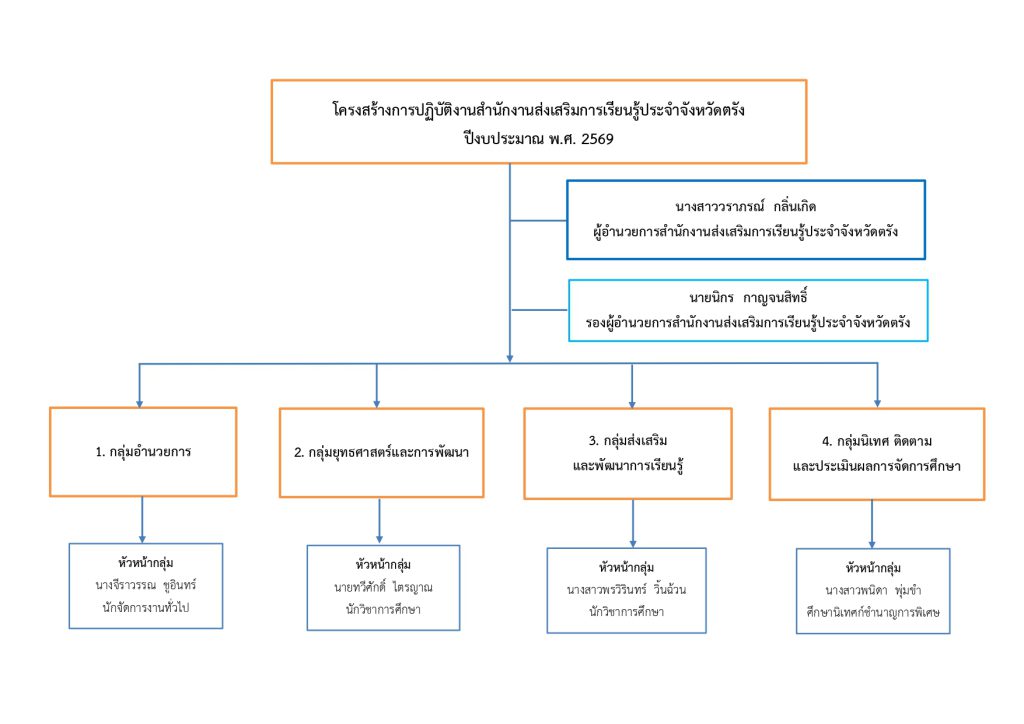 โครงสร้างการปฏิบัติงานสำนักงานส่งเสริมการเรียนรู้ประจำจังหวัดตรัง