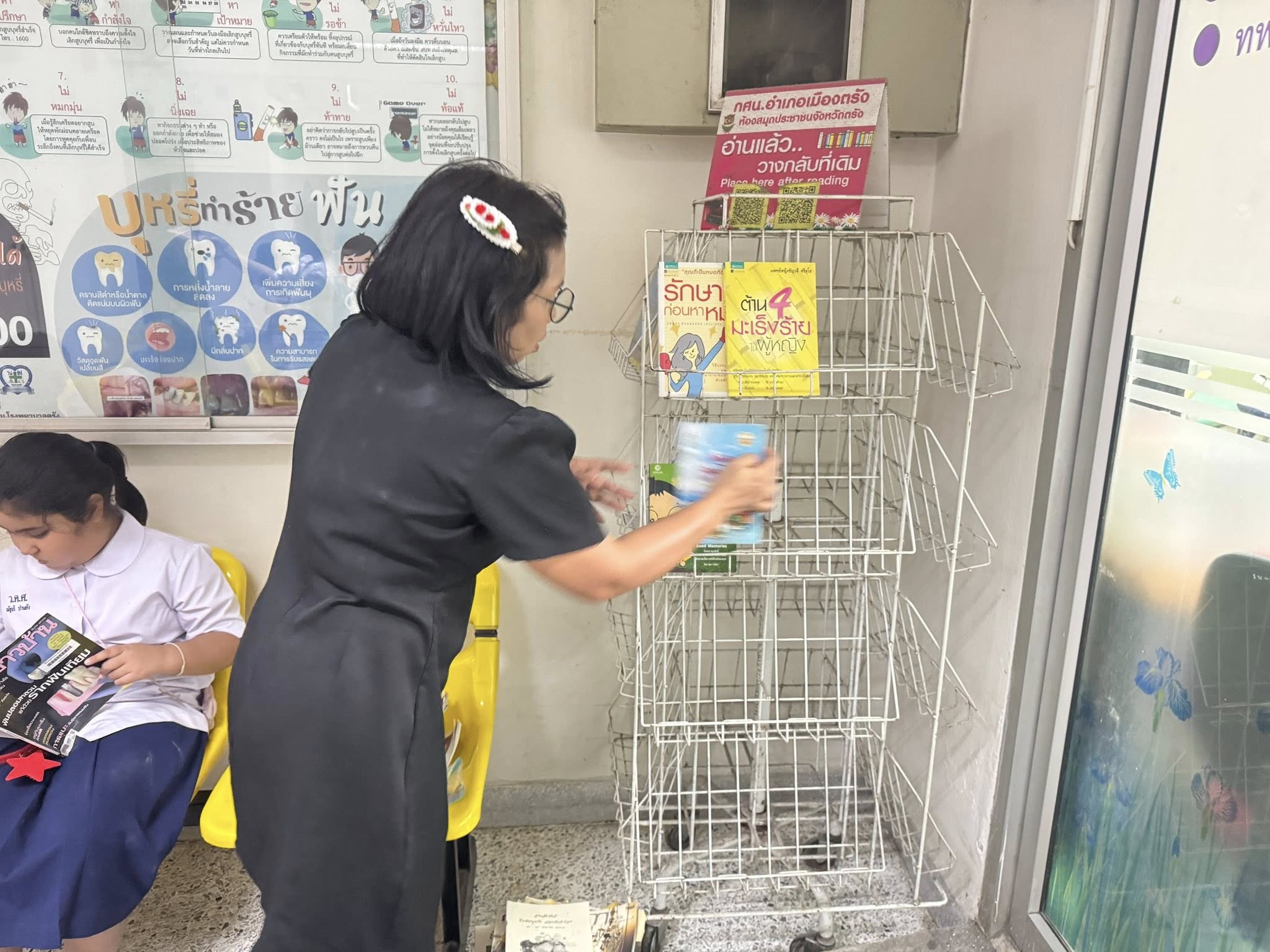 ส่งเสริมการอ่าน “นั่งที่ไหน อ่านที่นั่น” นำหนังสือไปหมุนเวียนมุมหนังสือของห้องสมุดประชาชนจังหวัดตรัง สกร.ระดับอำเภอเมืองตรัง ณ โรงพยาบาลตรัง