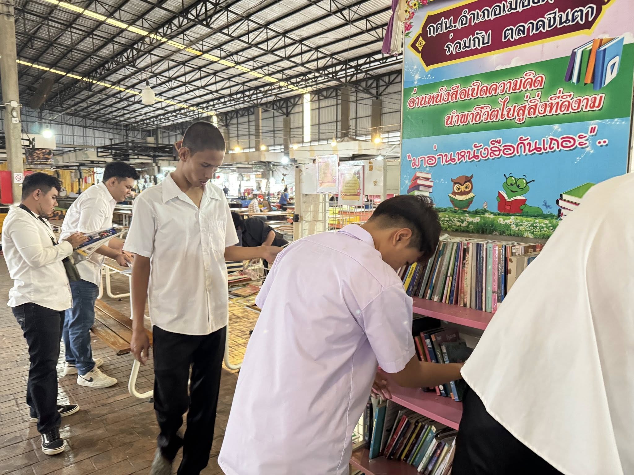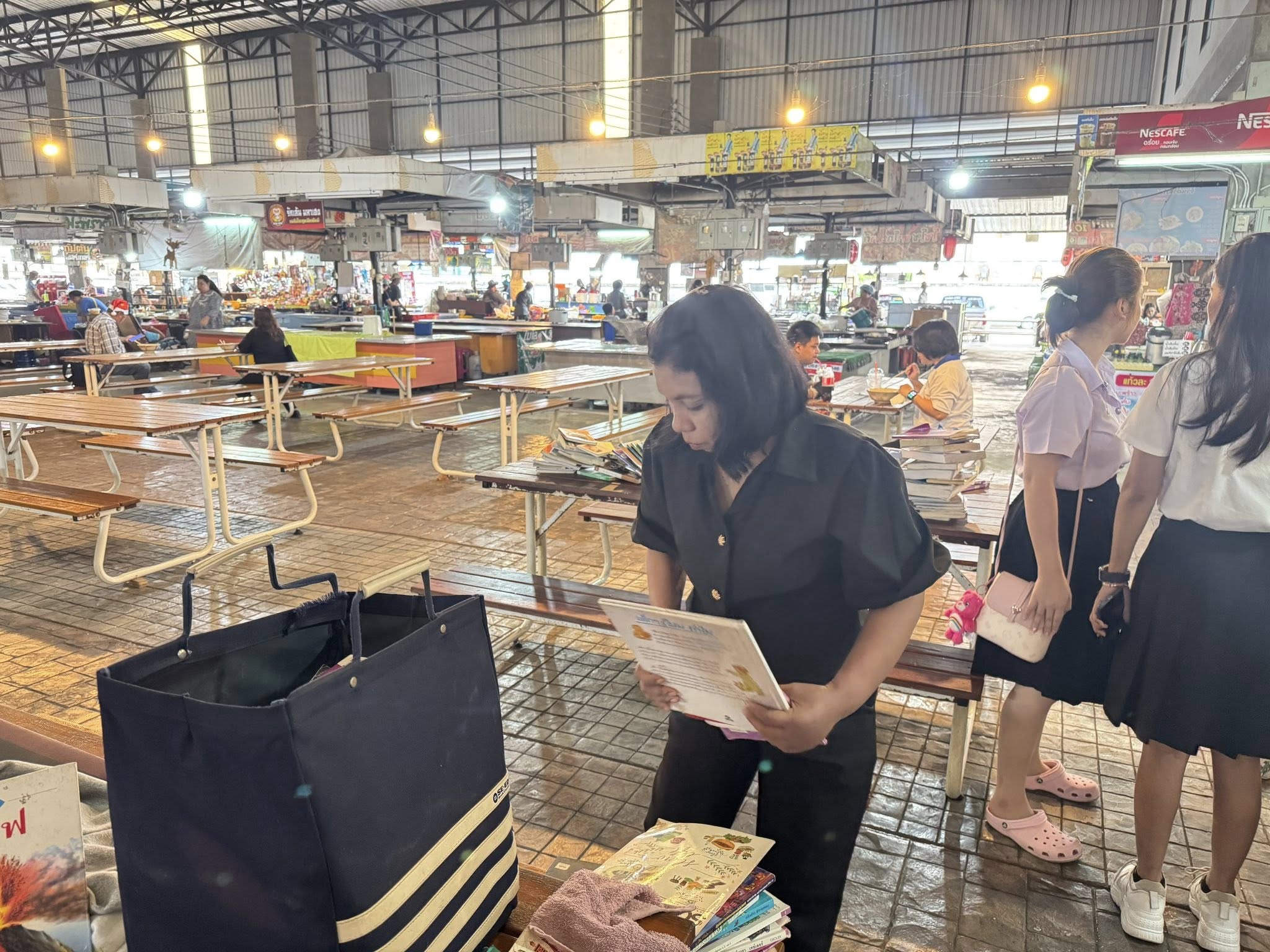 ส่งเสริมการอ่าน “นั่งที่ไหน อ่านที่นั่น” นำหนังสือไปหมุนเวียนมุมหนังสือของห้องสมุดประชาชนจังหวัดตรัง สกร.อำเภอเมืองตรัง ณ ตลาดนัดชินตา อำเภอเมืองตรัง จังหวัดตรัง