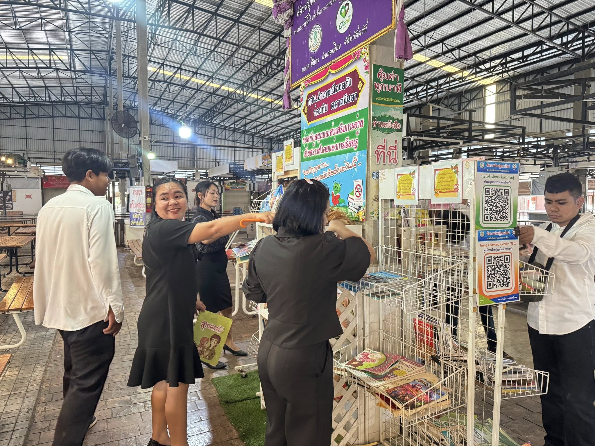 วันศุกร์ ที่ 26 ธันวาคม 2568 นางปาณิสรา อภิชัยสรพันธุ์ ผู้อำนวยการสถานศึกษา สกร.ระดับอำเภอเมืองตรัง มอบหมายให้ นางอนงค์ จอมทอง และนางสาวชวัลตา บุญสร้าง บรรณารักษ์ห้องสมุดประชาชนจังหวัดตรัง นางสาวสุภาภรณ์ ทองรอด ครูศูนย์การเรียนรู้ระดับตำบลทับเที่ยง พร้อมด้วย นักศึกษา ส่งเสริมการอ่าน “นั่งที่ไหน อ่านที่นั่น” นำหนังสือไปหมุนเวียนมุมหนังสือของห้องสมุดประชาชนจังหวัดตรัง สกร.อำเภอเมืองตรัง ณ ตลาดนัดชินตา อำเภอเมืองตรัง จังหวัดตรัง เพื่อส่งเสริมการอ่านให้กับประชาชนทั่วไปและผู้ที่มาใช้บริการตลาดนัดชินตาต่อไป