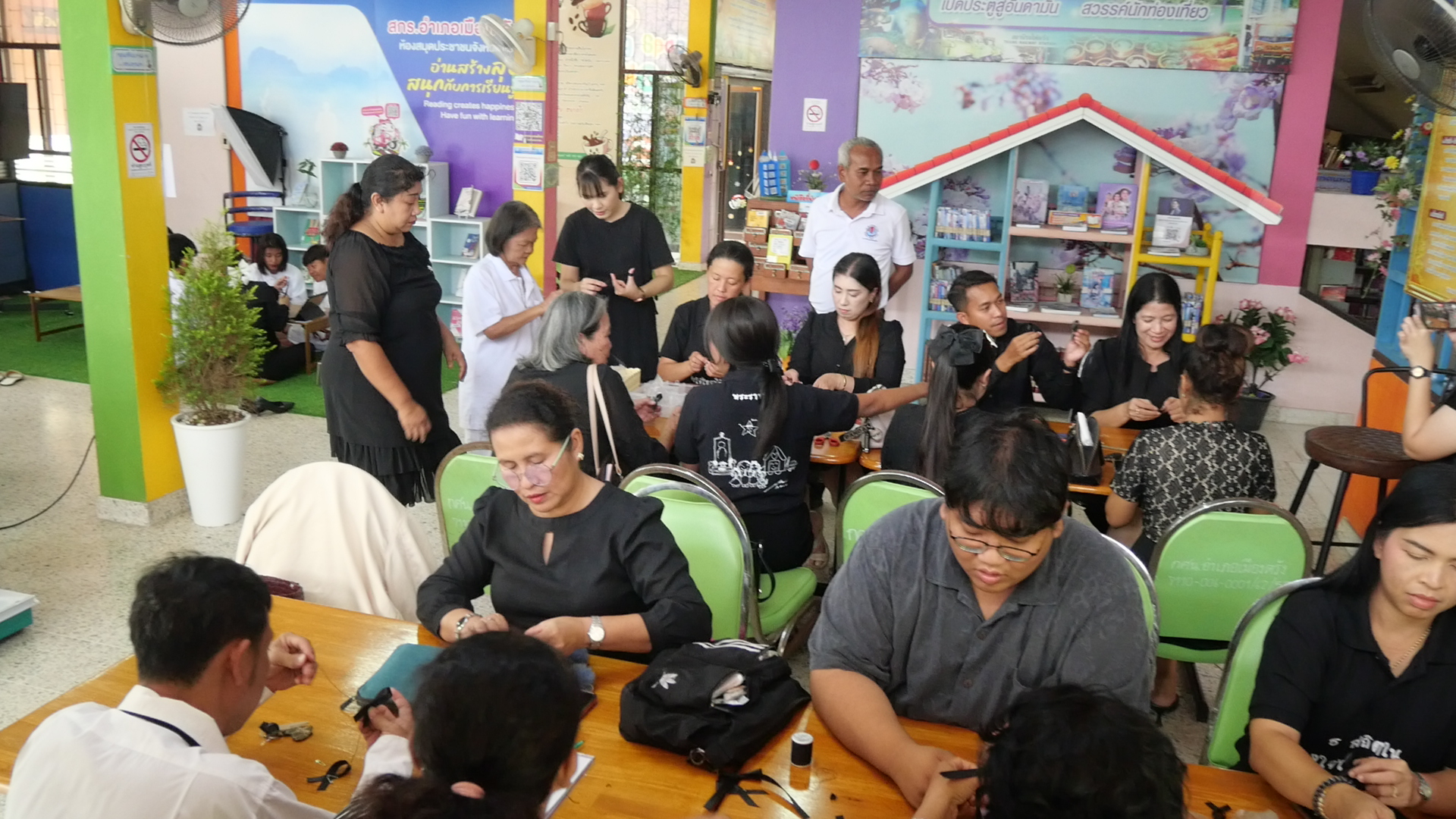 วันอังคารที่28 ตุลาคม 2568 นางปาณิสรา อภิชัยสรพันธุ์ ผู้อำนวยการศูนย์ส่งเสริมการเรียนรู้ระดับอำเภอเมืองตรัง ร่วมกับคณะครู นักเรียนศูนย์การเรียนรู้ระดับอำเภอเมืองตรัง และประชาชน พร้อมใจกันทำริบบิ้นไว้ทุกข์ แจกจ่ายให้กับประชาชน เพื่อถวายความอาลัย แด่สมเด็จพระนางเจ้าสิริกิติ์ พระบรมราชินีนาถ พระบรมราชชนนีพันปีหลวง ณ ห้องสมุดประชาชนจังหวัดตรัง