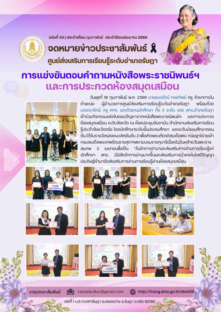ประชาสัมพันธ์ จดหมายข่าวประชาสัมพันธ์ ฉบับที่ 43 เดือน กุมภาพันธ์ 2569 27 มีนาคม 2026 จำนวนผู้เข้าชม: 2