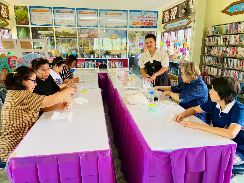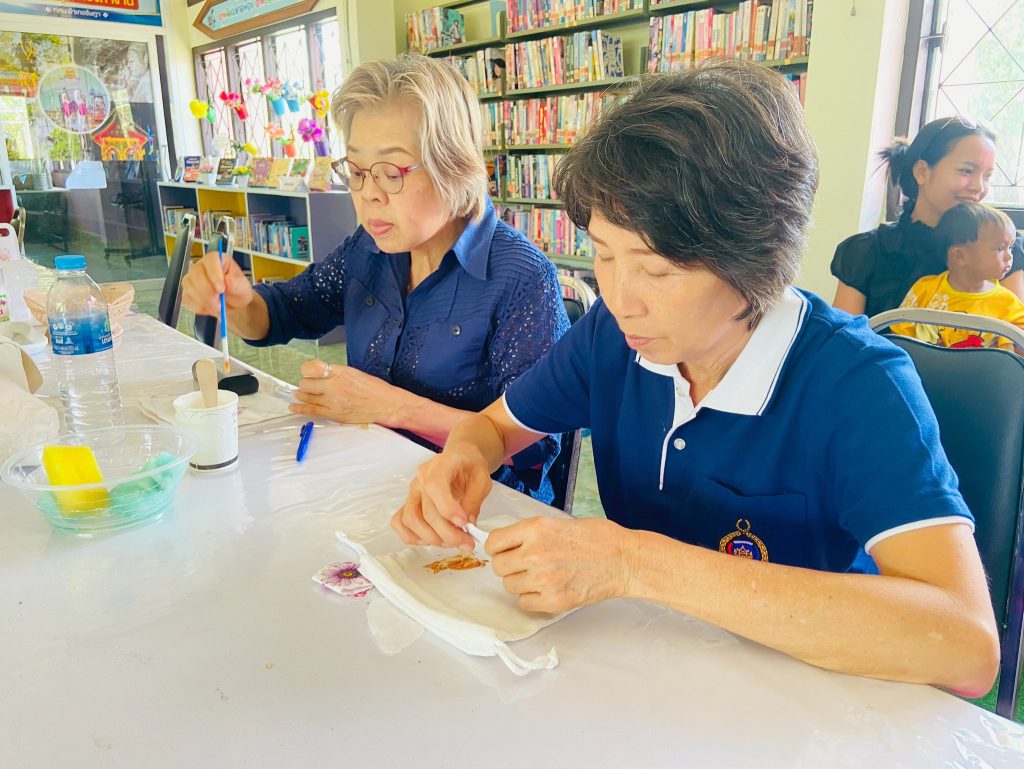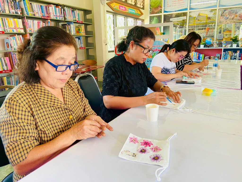 กิจกรรมส่งเสริมการอ่านและการเรียนรู้ตลอดชีวิตภายในห้องสมุดประชาชน ”กิจกรรมการทำกระเป๋าผ้าเดคูพาจ“