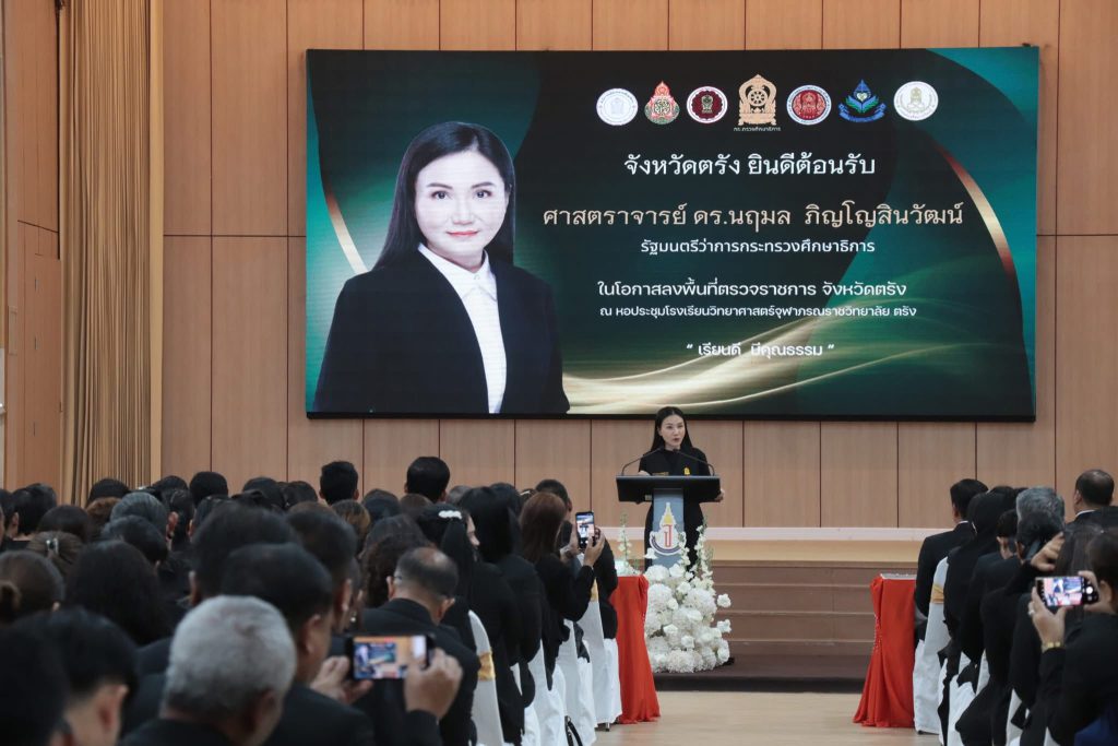 วันจันทร์ที่ 10 พฤศจิกายน 2568 นางเพียงใจ หอยสังข์ ผู้อำนวยการ สกร.ระดับอำเภอห้วยยอดมอบหมายให้บุคลากรสกร.ระดับอำเภอห้วยยอด ร่วมต้อนรับ ศาสตราจารย์ ดร.นฤมล ภิญโญสินวัฒน์ รัฐมนตรีว่าการกระทรวงศึกษาธิการ พร้อมด้วย ดร.สุเทพ แก่งสันเทียะ ปลัดกระทรวงศึกษาธิการ และคณะผู้บริหารระดับสูง ในโอกาสลงพื้นที่ตรวจราชการจังหวัดตรัง โดยมีนายสกุล ดำรงเกียรติกุล รองผู้ว่าราชการจังหวัดตรัง และ ดร.อรทัย เกิดภิบาล ศึกษาธิการจังหวัดตรัง ให้การต้อนรับ ณ หอประชุมโรงเรียนวิทยาศาสตร์จุฬาภรณราชวิทยาลัย ตรัง อำเภอเมืองตรัง จังหวัดตรัง