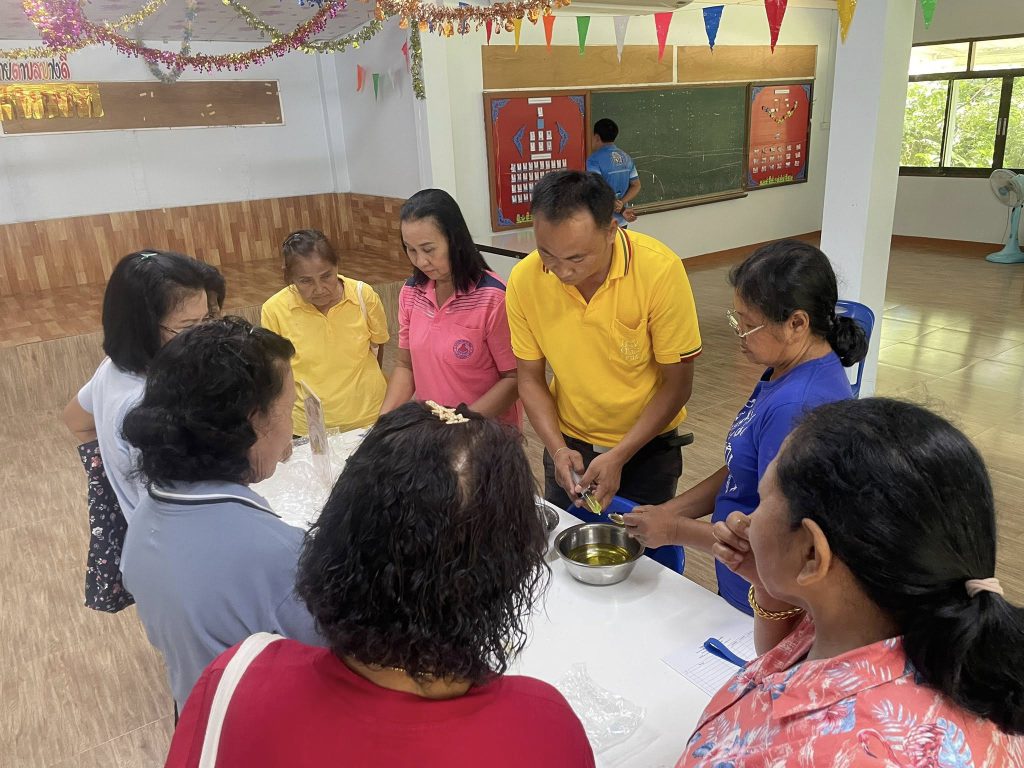 วันจันทร์ ที่ 21 เมษายน 2568 บรรณารักษ์และเจ้าพนักงานห้องสมุด จัดกิจกรรมส่งเสริมการอ่านและการเรียนรู้ตลอดชีวิต “การทำยาน้ำมันเหลืองสมุนไพร” ให้กลุ่มผู้สูงอายุตำบลบางดี ณ โรงเรียนผู้สูงอายุตำบลบางดี